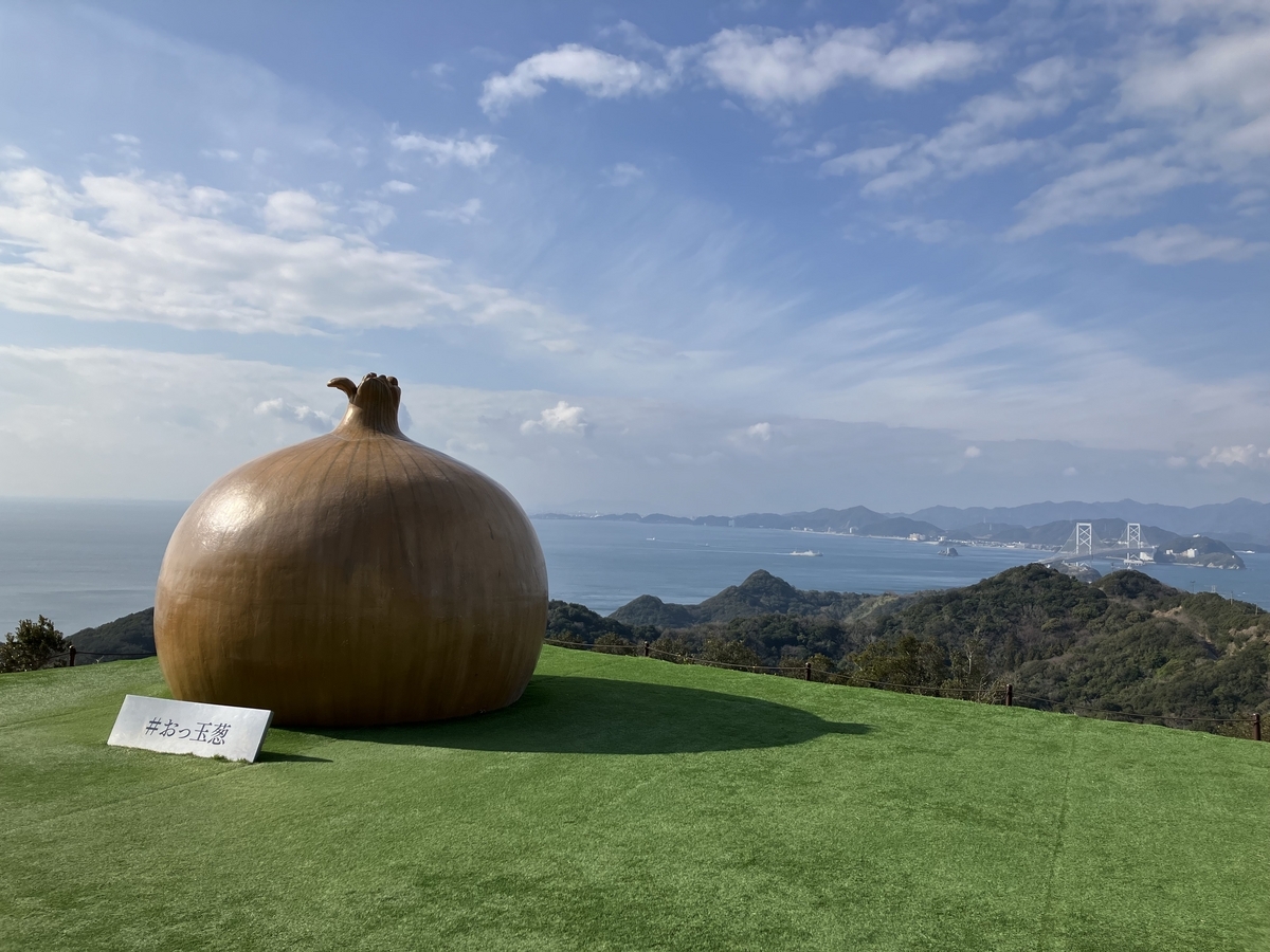 朝食として冷蔵庫に入っていたバーガーを組み立て、ワイワイ食べてから出発しました。まずは1日目も訪れたうずの丘大鳴門記念館へ行き、追加でお土産を買いました。2日目は快晴!玉ねぎが映えること映えること。