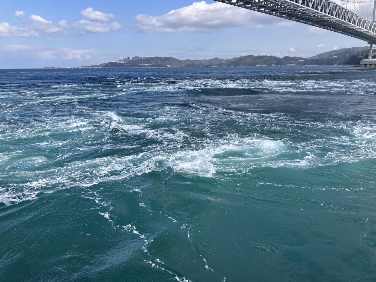 ご立派な船で海へ。強風すぎて極寒、入り口でカイロ渡された意味が分かりました。寒すぎるから動こうとか言って友人たちと船の上で足踏みしていました。ポイントに向けて進む中、海を見て波がうずうずし始めたね~とか話していたら、いつの間にかしっかり渦巻いていて船に乗った甲斐ありました!大迫力で大満足です。