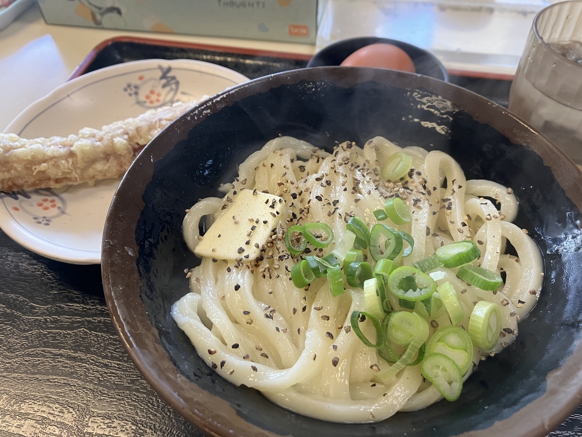有名な釜バターうどん!卵も付いています。洋風でこれまた美味しい。カルボナーラみたいでした、美味しくないわけがない…