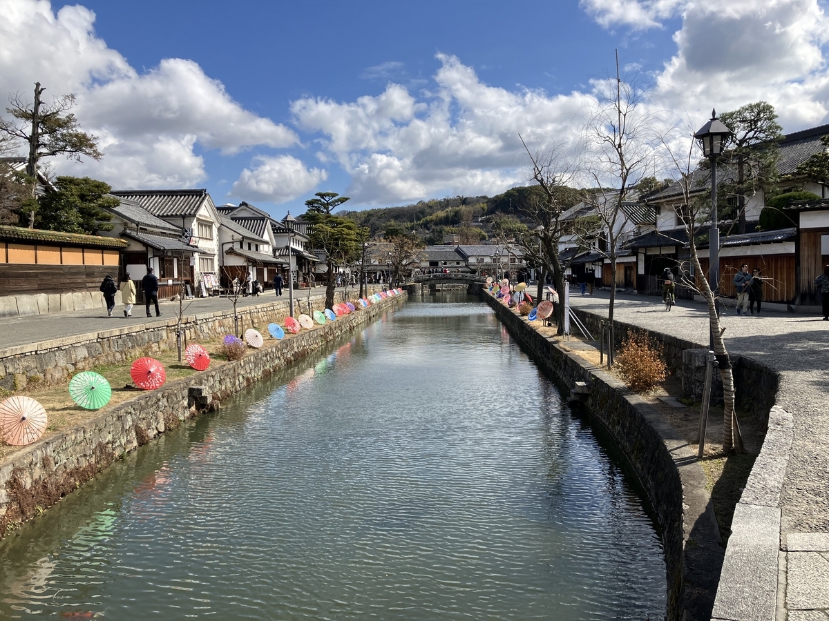 うどん3食食べて香川に満足し、瀬戸大橋を渡って岡山へ。そのまま倉敷へ直行しました。お洒落だねえ。