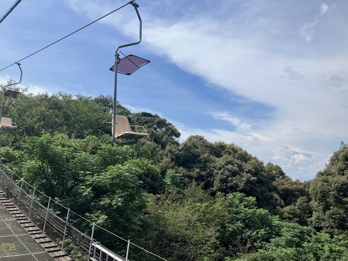 そのままロープウェイ乗り場まで歩いてリフトに乗りました。この形のリフトにスキー場以外で乗るの初めてでドキドキしました。物を落としたら取れなさそう。