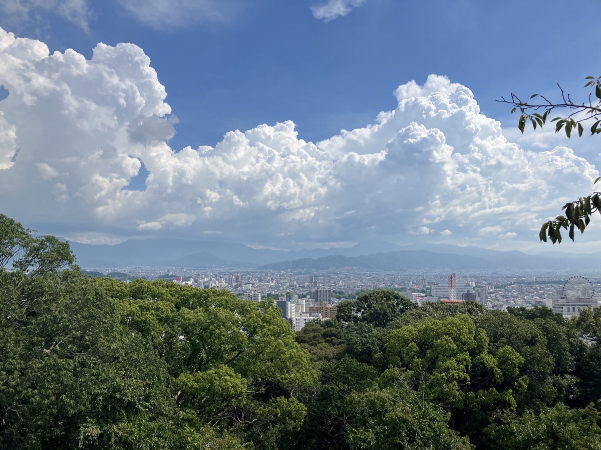 まあまあ登りましたが、お城はまだ先ということでせっせと登りました。道中で松山市内一望できました。