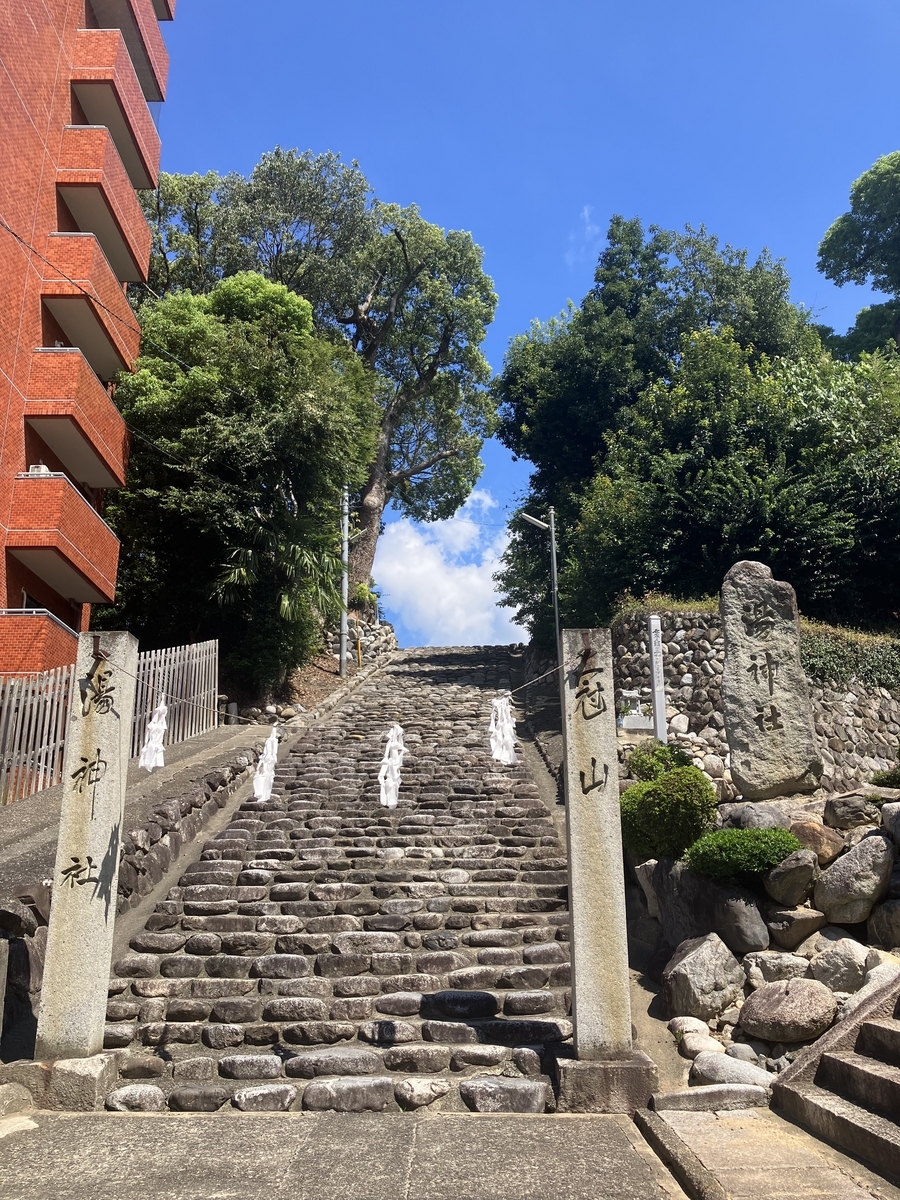 そのまま道後温泉を散策しました。湯神社はこの階段が一番の見どころでした(?)