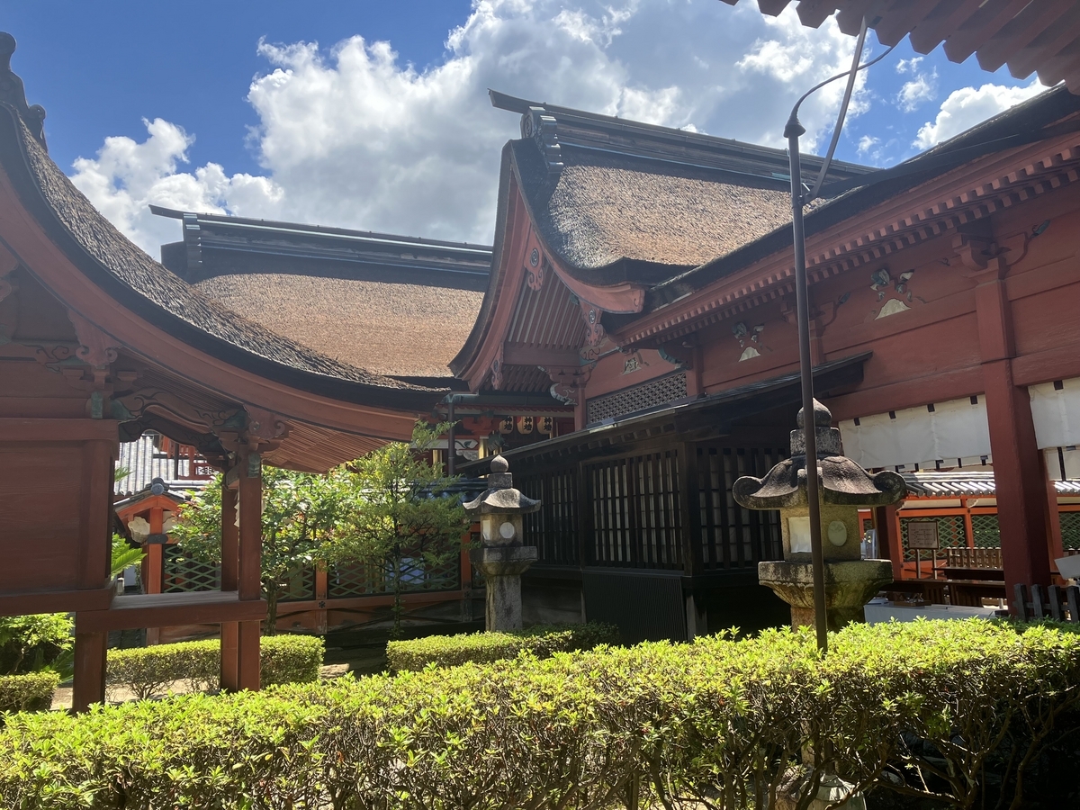 まっすぐ進んだ神社にもお参りしました。この日も暑くて暑くて…。回廊を歩きながら涼んでいました。江戸時代の和算とか展示されていました。
