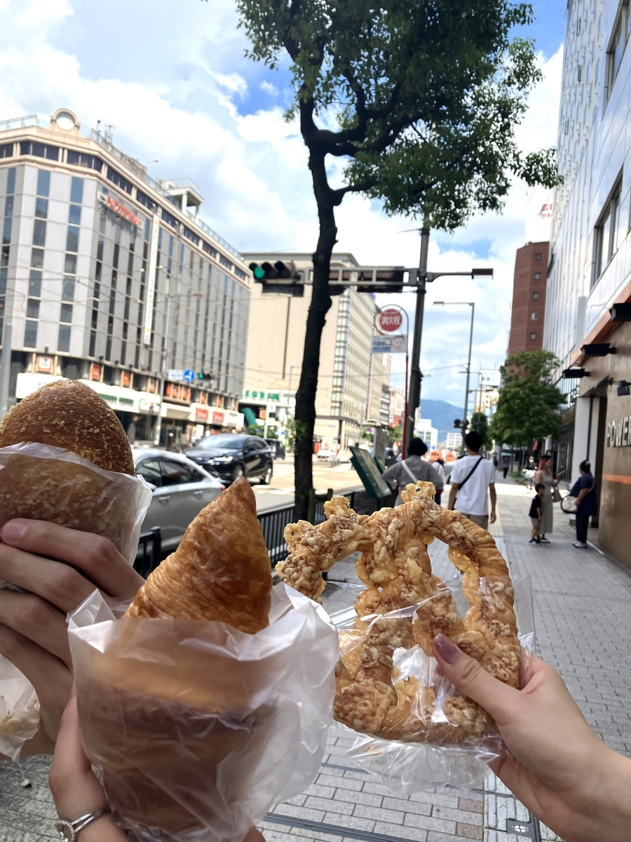 これにて道後温泉の散策を終え、松山城の方へ向かいました。お昼ご飯を食べ損ねたので三越でパン買って食べました。気分はパリジェンヌです。